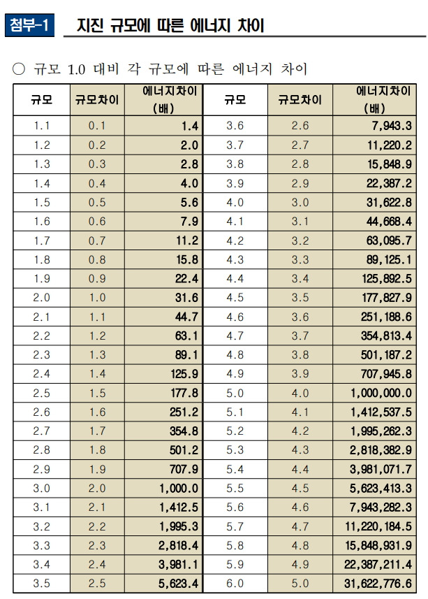 지진 진도와 규모의 차이