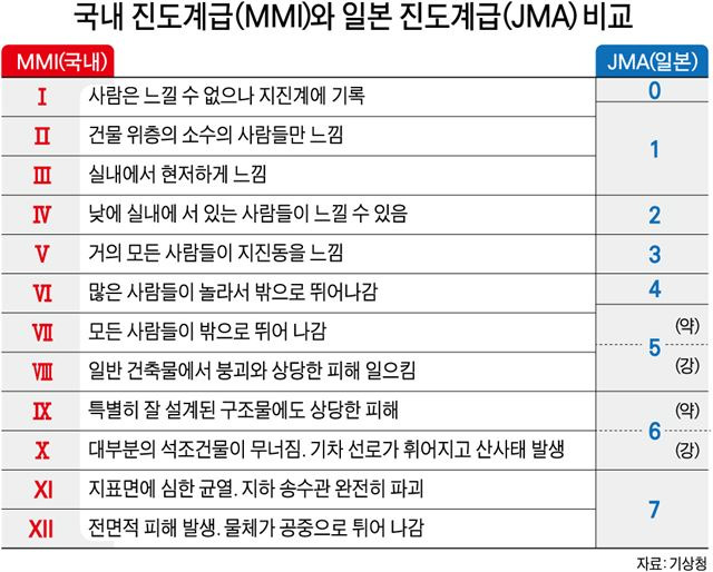 한국과 일본은 각각 다른 진도 측정 체계를 가지고 있어요. 한국은 MMI(Modified Mercalli Intensity) 체계를 사용하고, 일본은 JMA(Japan Meteorological Agency) 체계를 사용해요. 두 나라의 진도 등급을 비교해보면, 한국의 1등급은 일본의 0등급에 해당하고, 한국의 12등급은 일본의 7등급에 해당해요.